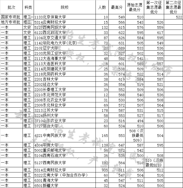 云南省招生考试院发布2017年普高录取日报(7月23日)。